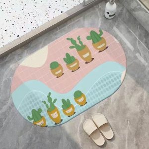 Household cartoon mat entry bathroom toilet absorbent floor mat anti-fall anti-slip carpet bedroom flocking mat