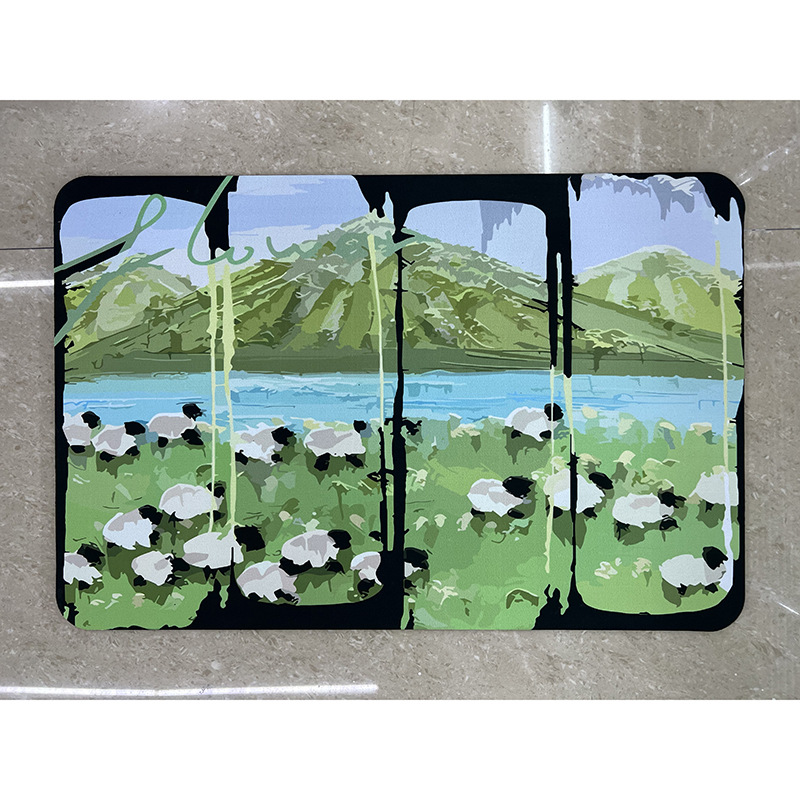 European classical flower toilet absorbent non-slip quick dry floor mat kitchen dirty mat oil painting soft diatom mud bathroom