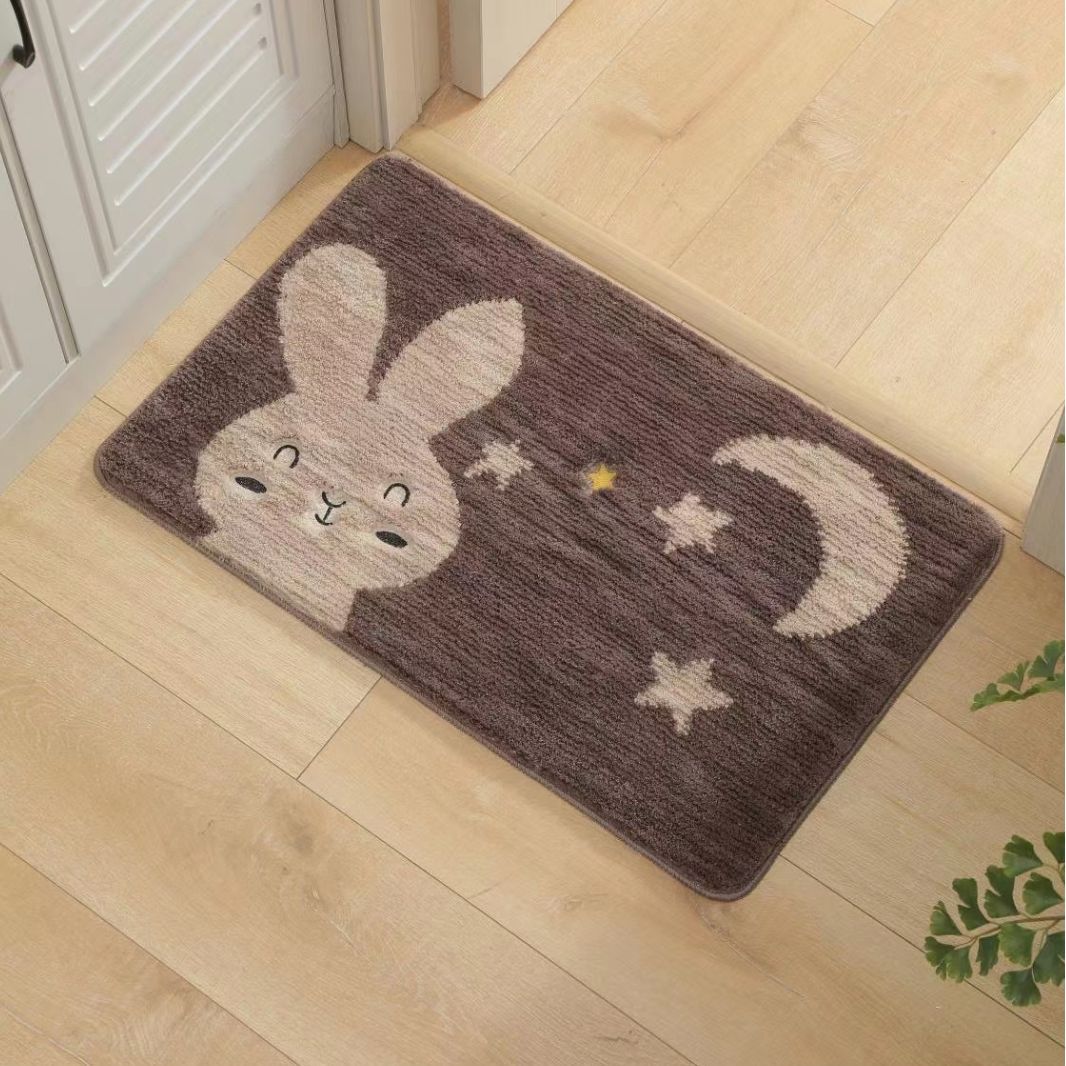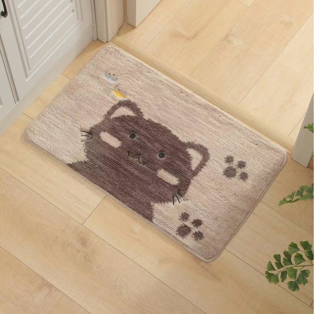Household cartoon mat entry bathroom toilet absorbent floor mat anti-fall anti-slip carpet bedroom flocking mat