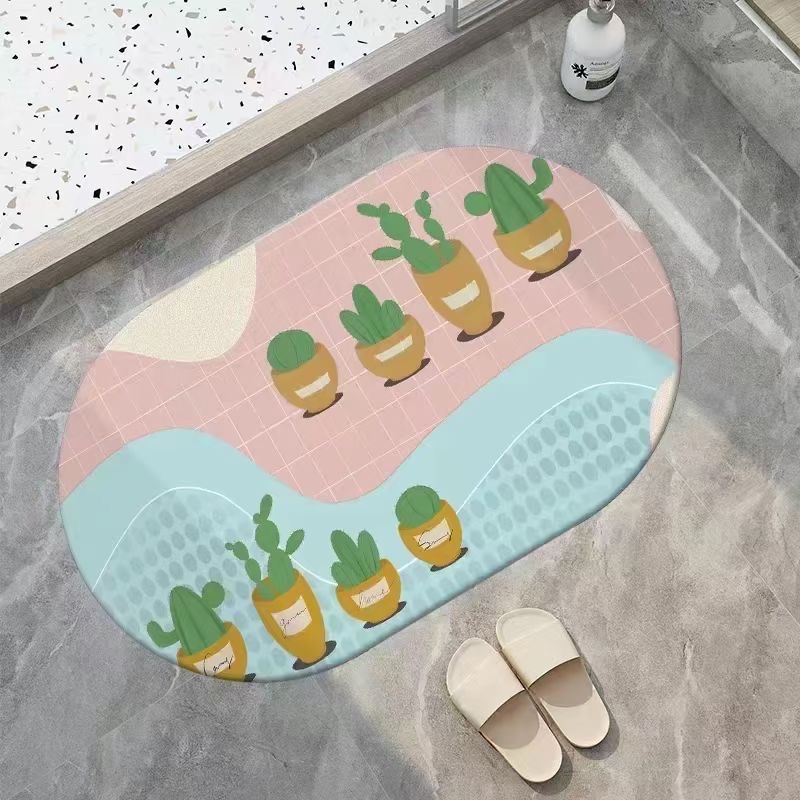 Introducing the Oval Mat Cartoon Entry Carpet, a household essential for absorbing dirt and moisture, perfect for kitchen floors and entryways.